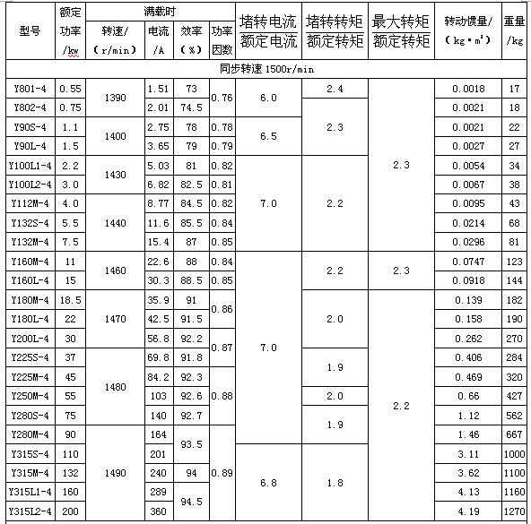 | 當(dāng)前位置:減速機(jī)首頁(yè) >> 產(chǎn)品大全 >> 異步電動(dòng)機(jī) >> Y系列(IP44)小型三相異步電動(dòng)機(jī) >> Y系列(IP44)三相異步電動(dòng)機(jī)主要技術(shù)參數(shù)(同步轉(zhuǎn)速1500r/min) |
