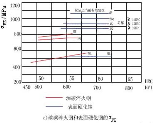 2—滲碳淬火的滲碳鋼;全齒廓火焰或感應(yīng)淬火的鋼、球墨鑄鐵
