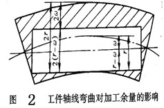 工件有些形狀和位置偏差不包括在尺寸公差的范圍內(nèi),但這些誤差又必須在本工序的加工中糾正,在本工序的加工余量中必須包括它。如圖2所示軸類零件,由于上工序軸線有直線度誤差δ,本工序加工余量必須相應增加2δ.屬于這一類偏差的有直線度、位置度、同軸度、平行度及軸線與端面的垂直度等。