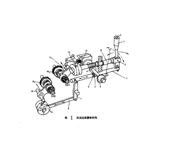 1、 縱向、橫向機動進給及快速移動是由一個手柄集中操縱圖1,當需要縱向移動刀架時,向相應方向(向左或向右)扳動手柄1.而操縱手柄1只能繞銷1擺動,于是手柄1下部的開口槽就撥動軸3軸向移動。軸3通過杠桿及7及扒桿8使鼓形凸輪9轉(zhuǎn)動,凸輪9的曲線槽迫使撥叉10移動,從而操縱軸ⅩⅩⅡ上的牙嵌式雙向離合器M8向相應方向嚙合。這時如光杠軸號ⅩⅩⅡ轉(zhuǎn)動,運動傳給軸ⅩⅩ,從而使刀架作縱向機動進給;如按下手柄1上端的快速移動按鈕s快速電動機起動,刀架就可向相應方向快速移動,直到松開快速移動按鈕時為止。如向前或向后扳動操縱手柄1,可通過軸14使鼓形凸輪13轉(zhuǎn)動,凸輪13上的曲線槽迫使杠桿12擺動,杠桿12又通過拔叉11撥動軸ⅩⅩⅡ上的牙嵌式雙向離合器M9向相應向方嚙合。這時,如接通光杠或快速電動機就可使橫刀架實現(xiàn)向前或向后的橫向機動進給或快速移動.操給手柄1處于中間位置時,離合器M8和M9脫開,這時機動進給及快速移動均被斷開。