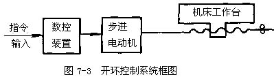 1)開環(huán)控制數(shù)控機(jī)床,在開環(huán)控制中,機(jī)床沒(méi)有檢測(cè)反饋裝置(見圖7-3),數(shù)控裝置發(fā)出信號(hào)的流程是單向的,它對(duì)機(jī)床移動(dòng)部件的實(shí)際位置不作檢驗(yàn),加工精度主要取決于伺服系統(tǒng)的性能。這種機(jī)床工作比較穩(wěn)定,反映迅速。調(diào)試方便,維修簡(jiǎn)單,但其控制精度受到限制。
