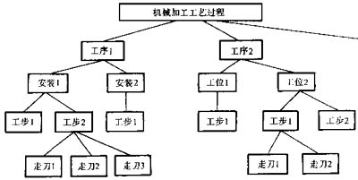 圖1-4 表示了某個零件機械加工工藝過程的組成情況,同時也說明了工序、安裝、工位、工步及走刀之間的關(guān)系。