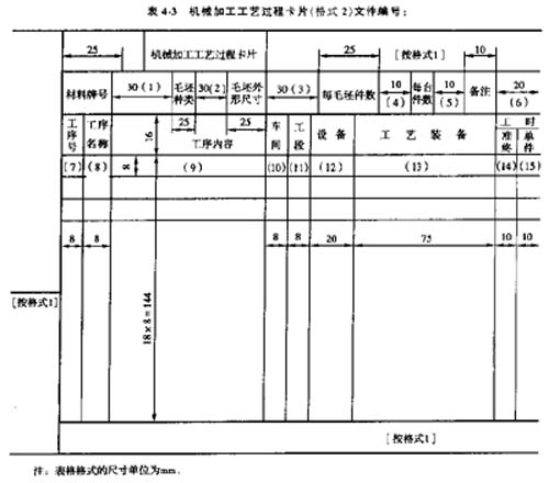 批大量生產(chǎn),除了有較細(xì)的工藝過程卡外,還要編制機(jī)械加工(或裝配)工序卡。目前,生產(chǎn)中用來說明工藝規(guī)程的幾鐘工藝文件,其需包含的內(nèi)容和具體格式已經(jīng)標(biāo)準(zhǔn)化(見JB/Z187·3—82)。表4-3~表4-6摘錄了機(jī)械加工工藝過程卡片和機(jī)械加工工序卡片的填寫格式和填寫內(nèi)容。