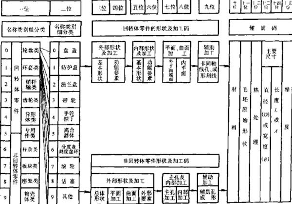 (1)機(jī)械零件分類編碼JLBM-1系統(tǒng)JLBM-1分類編碼系統(tǒng)是我國原機(jī)械工業(yè)部指定的一套通用零件分類編碼系統(tǒng)(JB/Z251—85),它適用于中等及中等以上規(guī)模的多品種、中小批量生產(chǎn)的機(jī)械加工工廠,是這個些工廠在設(shè)計(jì)、制造工藝和生產(chǎn)管理等方面實(shí)施成組技術(shù)的一種指導(dǎo)性文件。