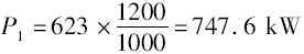按i=4.5及n1=1200r/min接近公稱(chēng)轉(zhuǎn)速1000r/min,查表23,ZDS450,i=4.5,n1=1000r/min,P1=623kW,當(dāng)n1=1200r/min時(shí),折算公稱(chēng)功率: