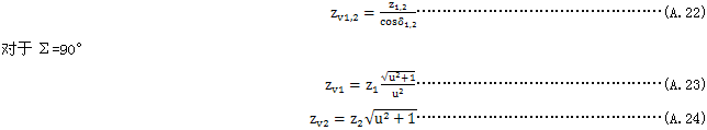 在圖A.2中,對(duì)于當(dāng)量圓柱齒輪的各幾何參量,不用下標(biāo)m(m通常表示齒面中點(diǎn)處)表示。