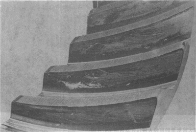 表示齒面一個蝕坑如何在齒面里層發(fā)展的一輪齒橫截面。