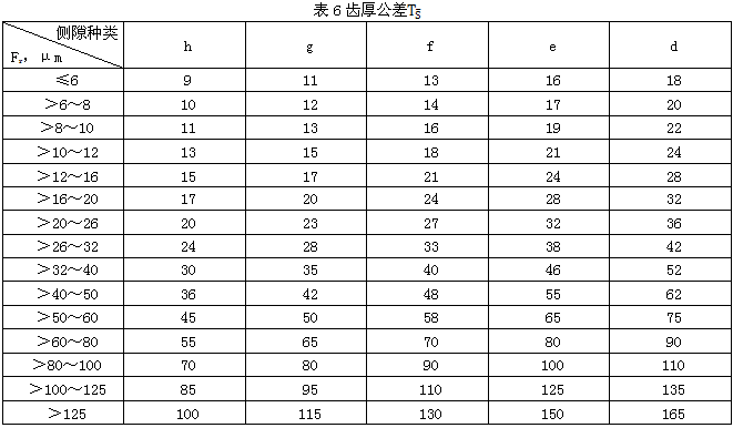 7.3評定齒輪傳動側(cè)隙的指標(biāo)是 和TS。具體數(shù)值分別見表5、表6。