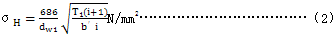 b.根據(jù)實(shí)測(cè)齒面未點(diǎn)蝕的當(dāng)量齒寬b′按下列簡(jiǎn)化式計(jì)算齒面接觸應(yīng)力σH: