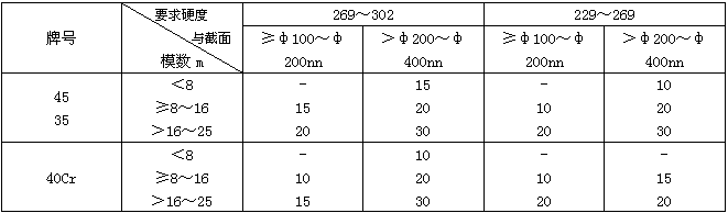 5.2.2齒輪毛坯淬火冷卻時(shí),介質(zhì)溫度應(yīng)控制在:水溫≤40℃;油溫≤80℃。
