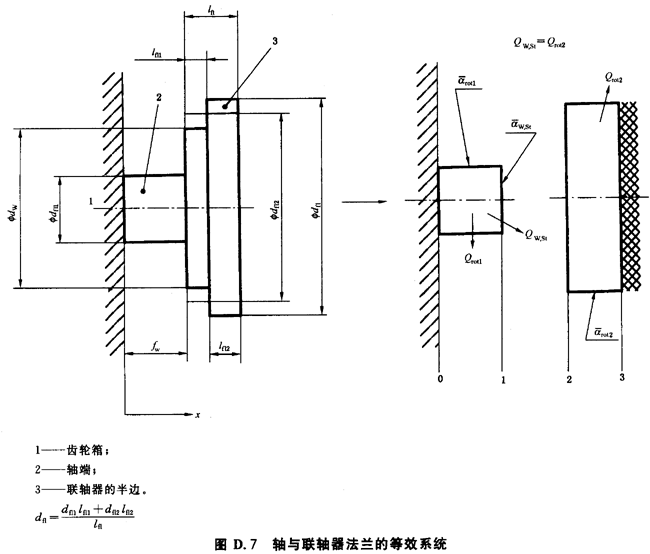 橫截面積Aq,sh與Aq,fl根據(jù)當(dāng)量直徑dsh和dfl分別計算(見圖D.7)。相當(dāng)于從軸到聯(lián)軸器的熱流的表面熱傳導(dǎo)系數(shù)α*sh,face由以下關(guān)系式計算: