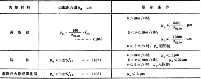 ②當(dāng)大、小齒輪的材料和熱處理不同時,其齒廓跑合量可取為相應(yīng)兩種材料齒輪副跑合量的算術(shù)平均值。