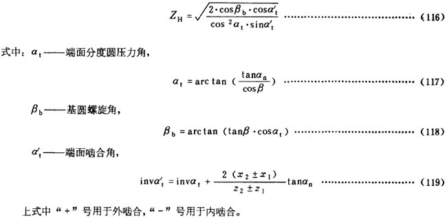 節(jié)點區(qū)域系數(shù)ZH是考慮節(jié)點處齒離曲率對接觸應(yīng)力的影響,并將分度圓上切向力折算為節(jié)圓上法向力的系數(shù)。
