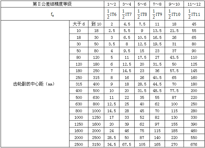 表1齒距累積公差FP及K個周節(jié)累積公差FPK值  μm