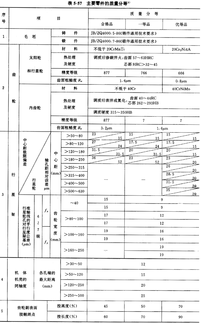 標(biāo)準(zhǔn)規(guī)定的行星齒輪減速器分為合格品、一等品和優(yōu)等品三個(gè)等級(jí)。符合JB1799-76和JB/Z291-87中2.1條規(guī)定的為合格品;符合JB3722~3724-84和JB/Z291-87中2.2條規(guī)定的為一等品;符合JB/Z291-87中2.3條規(guī)定的為優(yōu)等品。