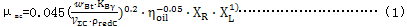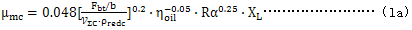 沿嚙合線的平均摩擦因數(shù)μmc,可由測量[1]得到與由公式(1)估計出。雖然,局部磨擦因數(shù)在節(jié)點(diǎn)C接近于零,當(dāng)引入公式(1)時,其平均值可用節(jié)點(diǎn)的參數(shù)與油溫Θoil時油的黏度ηoil大致得出。