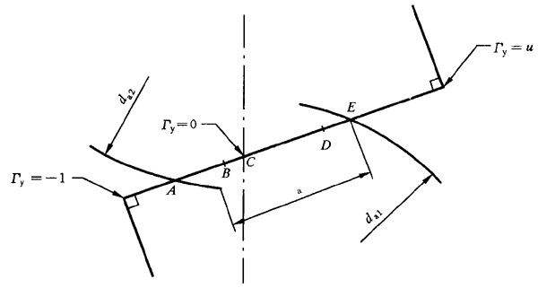 嚙合線上的點(diǎn)用無量綱線性參數(shù)гy來表示,在嚙合線與小輪基圓的切點(diǎn)處гy為-1,在節(jié)點(diǎn)處гy為0[33],見圖3。