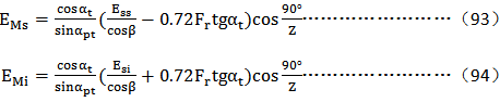 對(duì)量柱測(cè)量齒距(M值)偏差的測(cè)量結(jié)果ΔEM應(yīng)用設(shè)計(jì)圖樣規(guī)定的量柱測(cè)量距極限偏差EMs、EMi對(duì)其進(jìn)行評(píng)定。當(dāng)設(shè)計(jì)圖樣未作規(guī)定時(shí),應(yīng)將圖樣規(guī)定的齒厚極限偏差Ess、Esi按公試(91)、(92),(93),(94)換算為EMs、EMi;也可以將測(cè)得的ΔEM按公試(95),(96)(97),(98)換算為ΔEss、ΔEsi,用Ess、Esi對(duì)其進(jìn)行評(píng)定。