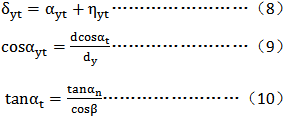 砧的尺寸應選擇得使其在齒槽中大致在分度圓的位置接觸齒面,棱柱的半角δyt可以用下面的近似方法來確定,此處δyt、ayt和ηyt為在測量圓上接觸的各角(見圖8)。