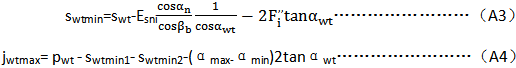 最大的理論側(cè)隙也可發(fā)生于當(dāng)兩個齒輪都按最小實效齒厚swtmin制成,且運(yùn)行于最松中心距條件下碰在一起時。在實踐中,那種情況不大可能發(fā)生。