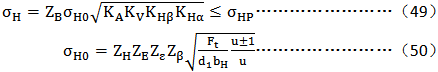 接觸強度計算基于節(jié)點或單對齒嚙合區(qū)內(nèi)界點(下界點)處的接觸應力σH,用兩者中的較大值計算承載能力。σH值與許用接觸應力σHP對于大小齒輪應分別計算;σH應小于或等于σHP。