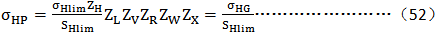 許用接觸應力(參考)σHPref是由式(52)在ZN=1及適當?shù)摩?SUB>Hlim、ZL、ZV、ZR、ZW、ZX、SHlim值下得出的。