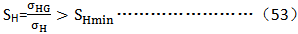 σHG——是根據(jù)式(52)和6.14確定的參考應力與靜態(tài)應力;σH對于小輪按照式(49)確定,對于大輪按式(51)確定(見6.1)。