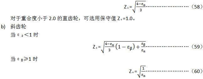 當ZB>1或ZD>1時,系數(shù)ZB與ZD用以將直齒輪節(jié)點上接觸應力分別轉(zhuǎn)換為小輪和大輪單對齒嚙合區(qū)下界點處的接觸應力,見6.1.1。