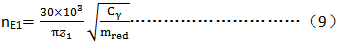 式中:nE1——小齒輪臨界轉(zhuǎn)速,r/min;