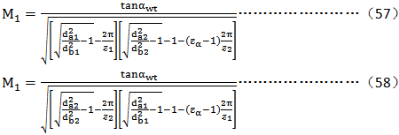 上述兩式中:“+”號(hào)用于外嚙合,“-”號(hào)用于內(nèi)嚙號(hào);