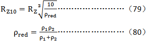 上述兩式中:RZ10——相對(duì)峰谷平均粗糙度,μm,見式(79);