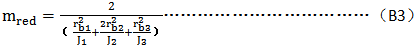 此時,內(nèi)齒圈的當(dāng)量質(zhì)量按外齒輪處理,行星齒輪的誘導(dǎo)質(zhì)量按式(B2)計算。當(dāng)內(nèi)齒圈與幾個行星齒輪嚙合時,按B1.3c)處理。