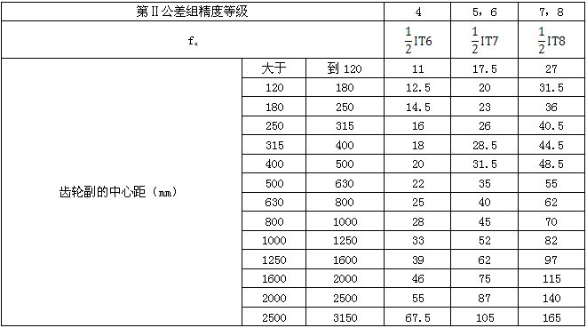 表7 中心距極限偏差±fa