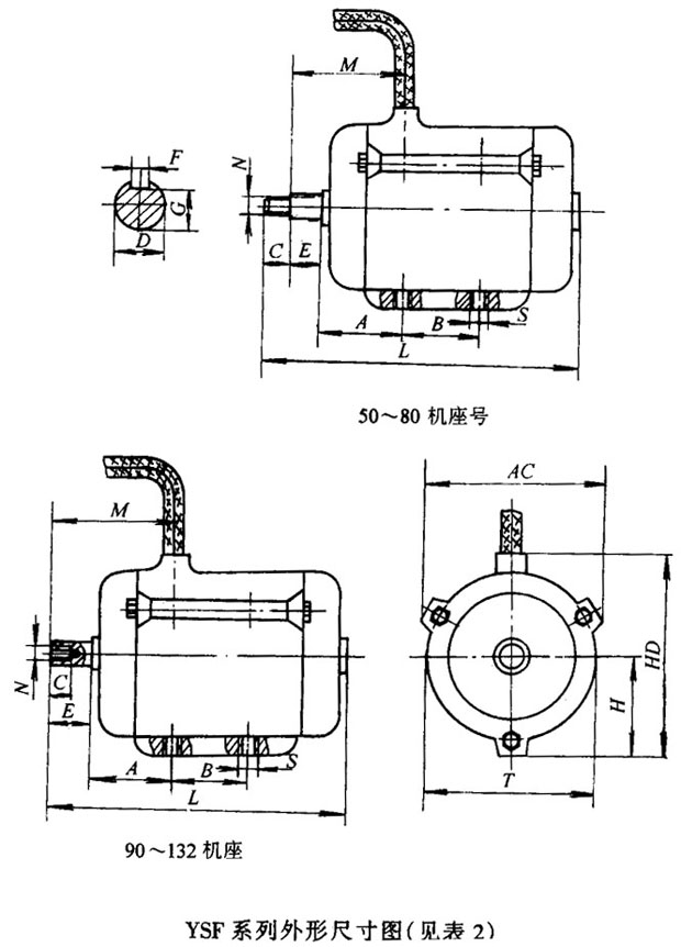 YSF系列軸流風(fēng)機(jī)專用三相異步電動機(jī)外形及安裝尺寸 |