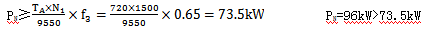 從額定功率表中選擇:類(lèi)型SLB3,規(guī)格9,對(duì)應(yīng)的PN=96kW