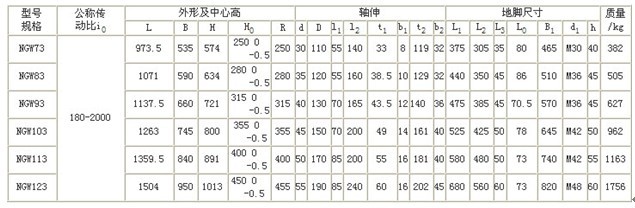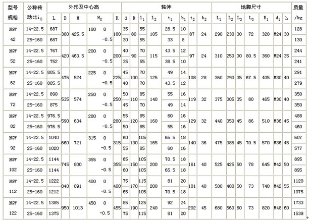 NGW型行星齒輪減速機(jī)主要構(gòu)建有太陽(yáng)輪、行星輪、內(nèi)齒圈、行星架。 具有一下特點(diǎn): 1、體積小、重量輕、在相同情況下,比普通漸開(kāi)線(xiàn)圓柱齒輪減速機(jī)重量輕1/2以上,體積小1/2~1/3。 2、傳動(dòng)效率高:?jiǎn)渭?jí)行星齒輪減速機(jī)達(dá)97%~98%;兩級(jí)行星齒輪減速機(jī)達(dá)94%~96%;三級(jí)行星齒輪減速機(jī)91%~94%。 3、傳動(dòng)功率范圍大:可以從小于1KW至1300KW,甚至更大。 4、傳動(dòng)范圍大:i=2.8~2000 5、適應(yīng)性強(qiáng)且耐用。 特點(diǎn)和適用范圍 結(jié)構(gòu)特點(diǎn) NGW型行星齒輪減速機(jī)主要構(gòu)建有太陽(yáng)輪、行星輪、內(nèi)齒圈、行星架。 為了使三個(gè)行星輪的載荷均勻分配,采用了齒式浮動(dòng)機(jī)構(gòu),即太陽(yáng)輪或行星架浮動(dòng),或者太陽(yáng)輪、行星架兩者同時(shí)浮動(dòng)。減速機(jī)中的齒輪為直齒漸開(kāi)線(xiàn)圓柱齒輪。具有一下特點(diǎn): 1、體積小、重量輕、在相同情況下,比普通漸開(kāi)線(xiàn)圓柱齒輪減速機(jī)重量輕1/2以上,體積小1/2~1/3。 2、傳動(dòng)效率高:?jiǎn)渭?jí)行星齒輪減速機(jī)達(dá)97%~98%;兩級(jí)行星齒輪減速機(jī)達(dá)94%~96%;三級(jí)行星齒輪減速機(jī)91%~94%。 3、傳動(dòng)功率范圍大:可以從小于1KW至1300KW,甚至更大。 4、傳動(dòng)范圍大:i=2.8~2000 5、適應(yīng)性強(qiáng)且耐用。主要零件均采用優(yōu)質(zhì)合金鋼經(jīng)滲碳淬火或氮化處理,行星齒輪減速機(jī)運(yùn)轉(zhuǎn)平穩(wěn)、噪音小、使用受命10以上。 6、用途和適用條件 NGW型行星齒輪減速器有單級(jí)(NGW11—NGW121),兩級(jí)(NGW42—NGW122)三級(jí) (NGW73—NGW123)三個(gè)臥式系列。主要用于冶金、礦山、起重運(yùn)輸機(jī)械設(shè)備,也可用于其它類(lèi)似工礦條件下作動(dòng)力傳動(dòng)。 高速軸最高速不超過(guò)1500r/min 齒輪圓周速度不超過(guò)10m/s; 工作環(huán)境溫度為-40℃—45℃; 可正反兩向運(yùn)轉(zhuǎn)。 NGW型行星齒輪減速器的一個(gè)重要特點(diǎn)是,內(nèi)嚙合于外嚙合之間共用一個(gè)行星輪,NGW就是由“內(nèi)、公、外”三字的漢語(yǔ)拼音的第一個(gè)字母組成的。