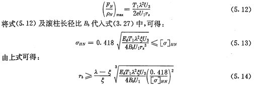 上式為根據內齒圈與外滾子的許用接觸應力所確定的激波器半徑的取值范圍。顯然激波器半徑Tb的取值應同時滿足式(5.9)及式(5.14)的要求。
