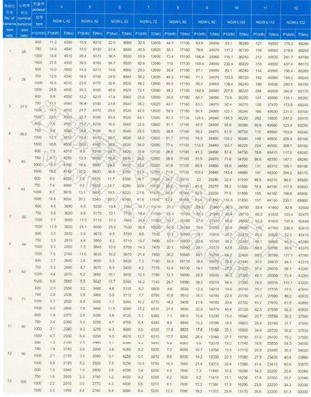 P1—公稱(chēng)輸入功率,當(dāng)減速器輸入功率不是1500.1000.750r/min時(shí),可按最近表列轉(zhuǎn)速的一檔,折算P2