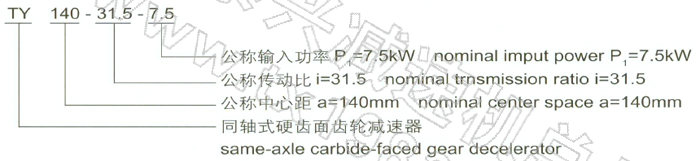 減速器的標記代號中包括減速器型號、公稱中心距、公稱傳動比和公稱輸入功率。