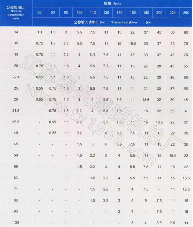 五、減速器的公稱傳動比和公稱輸入功率P1(N1=1500r/min)