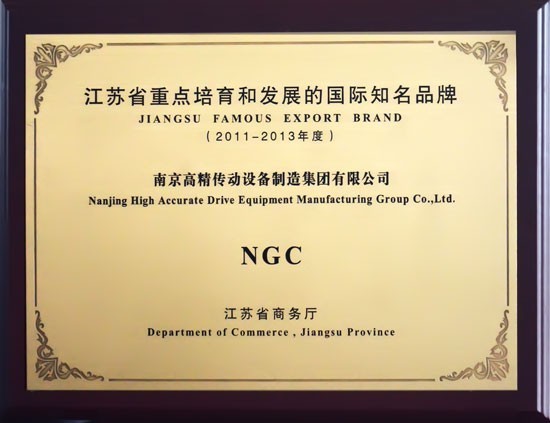 江蘇省商務廳于2011年8月15日上午在南京狀元樓酒店隆重召開全省出口品牌工作會議,省領導、省商務廳及省有關單位領導為“2011-2013年度江蘇省重點培育和發(fā)展的國際知名品牌”企業(yè)授牌,南京高精傳動設備制造集團有限公司(以下簡稱:南高齒)位列其中。