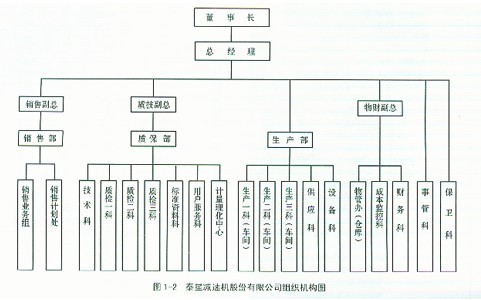 Ⅰ豐碩成果 坐落在中國蘇中平原的泰星減速機股份有限公司從1984年建廠,經(jīng)過20多年的拼搏發(fā)展,取得了驕人的業(yè)績,創(chuàng)造了許多令人難以置信的奇跡。 從當初無資金、無設(shè)備、無產(chǎn)品、無市場的一窮二白、資不抵債的作坊式小廠發(fā)展成為現(xiàn)擁有固定資產(chǎn)3.8億元,員工2500多人,其中一程技術(shù)人員586人,占地68萬平方米的中國最大的減速機制造企業(yè),成為了中國減速機的生產(chǎn)基地,泰星減速機股份有限公司。根據(jù)2003年中國機械500強的排序,名列全國減速機行業(yè)榜首。 公司生產(chǎn)減速機不僅產(chǎn)量最高,銷量也最大。2004年,公司的銷售收入為5.5億元,主要產(chǎn)品的市場占有率高達25%,已經(jīng)連續(xù)11年名列全國同行首位。 20年前公司為社會創(chuàng)造了33億4千多萬元的財富,向國家交納了近4億元的稅金。 公司的產(chǎn)品遍布全國各地,并已走向德國、日本、美國等機械強國,國家的重點工程項目,從三峽水利工程,江陰長江大橋建設(shè)工程,黃河小浪底工程,葛洲壩工程,西氣東輸工程到南水北調(diào)工程等都在使用泰星的產(chǎn)品。 泰星減速機股份有限公司組織機構(gòu)圖見圖1-2。在公司目前的2500多名員工中,有50%為當?shù)剞r(nóng)民,大專以上學歷的僅占20%,其余的皆為初、高中以下學歷,但他們卻生產(chǎn)出了國內(nèi)領(lǐng)先、國際一流的產(chǎn)品。 泰星牌減速機成為中國減速機行業(yè)惟一的國家“121”重點保護名優(yōu)產(chǎn)品。