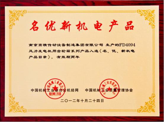 近期,由中國機械工業(yè)質(zhì)量管理協(xié)會和中國機械工業(yè)聯(lián)合會機經(jīng)網(wǎng)共同主辦的“名優(yōu)新機電產(chǎn)品”評選活動中,南京高精傳動設(shè)備制造集團有限公司(簡稱:南高齒)子公司南京高速齒輪制造有限公司研制的的FD4094型風(fēng)電齒輪箱系列產(chǎn)品成功入選《名、優(yōu)、新機電產(chǎn)品目錄》。