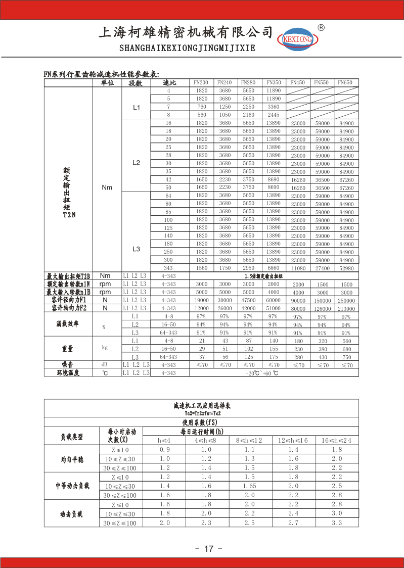 FN系列行星齒輪減速機(jī)參數(shù):