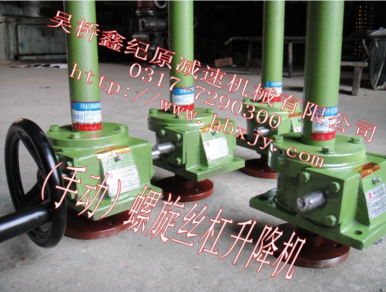 螺旋絲杠升降機是一種基礎(chǔ)起重部件,符合JB/T8809—1998原QWL蝸輪絲杠升降機符合(JB/ZQ4391—86)標準。該產(chǎn)品可廣泛用于機械、冶金、建筑、化工、醫(yī)療、文化衛(wèi)生等各個行業(yè)。承載能力2.5—120T。具有結(jié)構(gòu)緊湊、體積小、重量輕、動力源廣泛、噪音小、安裝方便、使用靈活、功能多、配套形式多、可靠性高、使用壽命長等優(yōu)點。具有提升、降落、推進、翻轉(zhuǎn)等功能,可以單臺或組合使用。能按一定程序準確地控制調(diào)整提升或推進的高度,可以用電動機或其它動力直接帶動,也可以手動。最高輸入轉(zhuǎn)速1500r/min,最大提升速度2.7m/min。有不同的結(jié)構(gòu)型式和裝配方式,提升高度按用戶的要求制造。該裝置可以自鎖,QWL蝸輪絲杠升降機" target=_blank>絲杠升降機是一種基礎(chǔ)起重部件,其符合JB/Z04391-86標準,是將蝸輪減速器和絲杠螺母副等巧妙地結(jié)合在一起組成的一個運動組合單元。它既可以單獨使用,又可以象拼積木似地通過聯(lián)接件快捷組合,實現(xiàn)物體的升降、往復(fù)、翻轉(zhuǎn)等運動。 QWL蝸輪絲杠升降機作為一種功能部件已被廣泛應(yīng)用于各行各業(yè)。例如:機械行業(yè)的傳動裝置、數(shù)控執(zhí)行裝置;冶金行業(yè)的軋輥運動裝置、煉鋼廠鋼包提升和翻轉(zhuǎn)裝置以及人所不能及的場所的運動傳遞裝置;鐵路車輛行業(yè)的車輛舉升架,大型柔性夾緊、轉(zhuǎn)位工裝、焊接機器人等;建筑行業(yè)的舉升裝置、大型門窗自動或遙控開啟裝置;水利等行業(yè)用閘門的開啟裝置、雷達及太陽能遙感裝置;醫(yī)療器械、升降舞臺及汽車制造業(yè)的舉升裝置;以及航空航天、國防軍事的傳動裝置等等。事實上,蝸輪絲杠升降機幾乎可以在任何需要實現(xiàn)機械位移傳的地方使用。