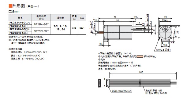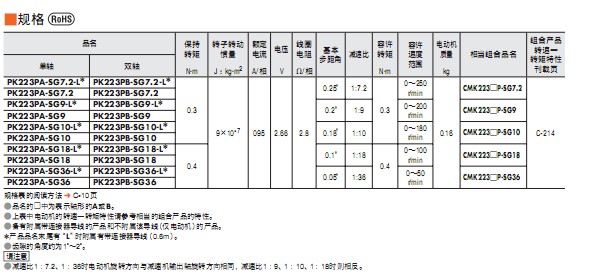 >>PK223PA-SG10-L日本東方PK系列SH減速機型步進電機