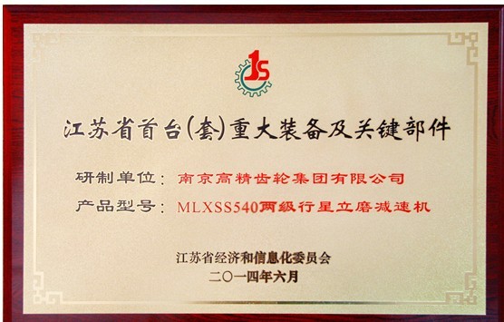 近日,南高齒齒輪集團(tuán)子公司——南京高精齒輪集團(tuán)有限公司獲得由江蘇省經(jīng)信委頒發(fā)的認(rèn)定證書,公司自主研制的“MLXSS540兩級(jí)行星立磨減速機(jī)”被認(rèn)定為江蘇省首臺(tái)(套)重大裝備。江蘇省首臺(tái)(套)重大裝備及關(guān)鍵部件的認(rèn)定和應(yīng)用示范,旨在鼓勵(lì)發(fā)展高端制造領(lǐng)域自主研制的高新技術(shù)裝備、大型成套裝備及其關(guān)鍵部件。
