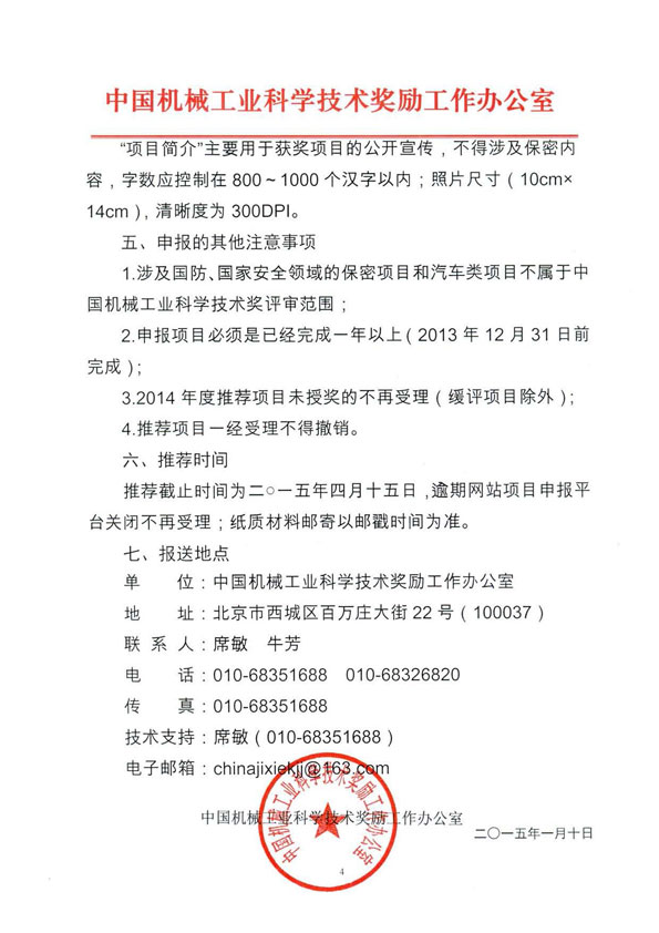 關(guān)于2015年度“中國機械工業(yè)科學(xué)技術(shù)獎”申報、推薦工作的通知