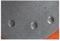 圖1 稀土增強(qiáng)陶瓷涂層2000h腐蝕 圖2 WC30%+Fe陶瓷涂層1500h腐蝕樣品 圖3 CrC陶瓷涂層1500h腐蝕樣品 圖4 4Cr13鋼800h腐蝕樣品 涂層抗變形能力測(cè)試結(jié)果如圖5和圖6所示。實(shí)驗(yàn)采用布氏硬度壓痕法,鋼球直徑10mm,載荷1800N,測(cè)試樣品經(jīng)1500h腐蝕測(cè)試后進(jìn)行壓痕測(cè)試。 圖5 稀土增強(qiáng)陶瓷涂層壓痕樣品 圖6 CrC陶瓷涂層樣品 5 展望 在熱噴涂耐磨涂層,尤其在螺桿泵技術(shù)領(lǐng)域的涂層采用真空浸滲技術(shù)封堵涂層缺陷的報(bào)道還鮮有報(bào)道,且未見成果應(yīng)用。開展這一領(lǐng)域研究,在國(guó)內(nèi)具有一定的技術(shù)先進(jìn)性,在螺桿泵行業(yè)也有領(lǐng)先技術(shù)的優(yōu)勢(shì)。 寧波鎮(zhèn)海減變速機(jī)公司借助了國(guó)防工業(yè)設(shè)備及技術(shù)的先進(jìn)優(yōu)勢(shì),在噴涂技術(shù)途徑上采用了先進(jìn)的超音速火焰噴涂技術(shù)和等離子噴涂技術(shù),獲得了優(yōu)良的涂層質(zhì)量。涂層防腐技術(shù)途徑采用了真空封堵技術(shù)途徑,有效克服了噴涂涂層的制備缺陷,同時(shí)也有效地提高了涂層的結(jié)構(gòu)強(qiáng)度。 目前,在涂鍍層上應(yīng)用真空浸滲技術(shù)封堵涂鍍層中的缺陷的已有研究,但進(jìn)展較慢,由于受封堵劑的限制,在納米粒子浸滲劑的領(lǐng)域落后國(guó)外。目前兵器行業(yè)某研究所從匈牙利引進(jìn)的真空封堵劑采用了硅酸鹽納米粒子技術(shù),使得鋁、鎂合金微弧氧化層、鋁合金陽極化層的封堵獲得良好效果,使得涂層的耐腐蝕性能成倍獲得提高。同時(shí),在涂層與基體界面的處理上,采用了無裂紋涂鍍層技術(shù),無晶化鍍層處理,有效提高了基體的抗腐蝕性能,使45鋼基體達(dá)到不銹鋼的耐酸堿腐蝕能力,有效增加了涂層的抗腐蝕性能。