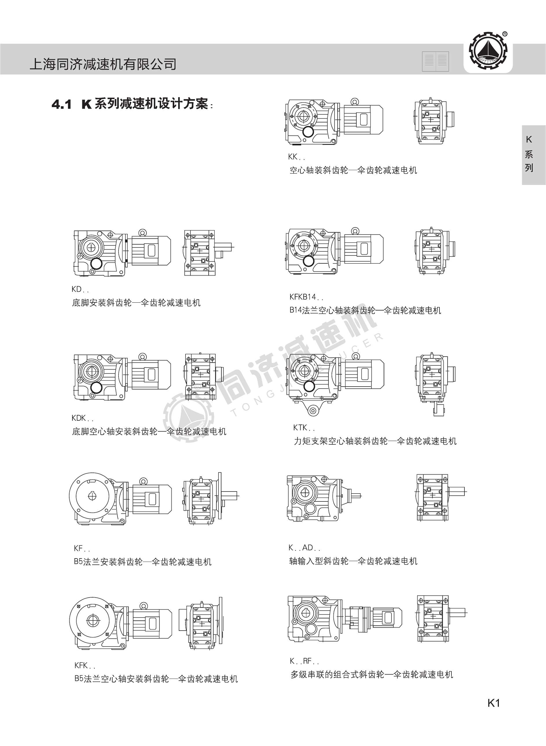 K系列減速電機(jī)其齒輪的齒線為圈弧形,重疊系數(shù)大、承載能力高、磨損均勻、噪聲小、